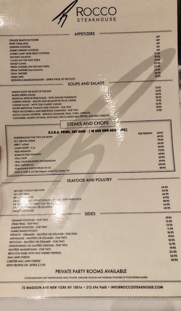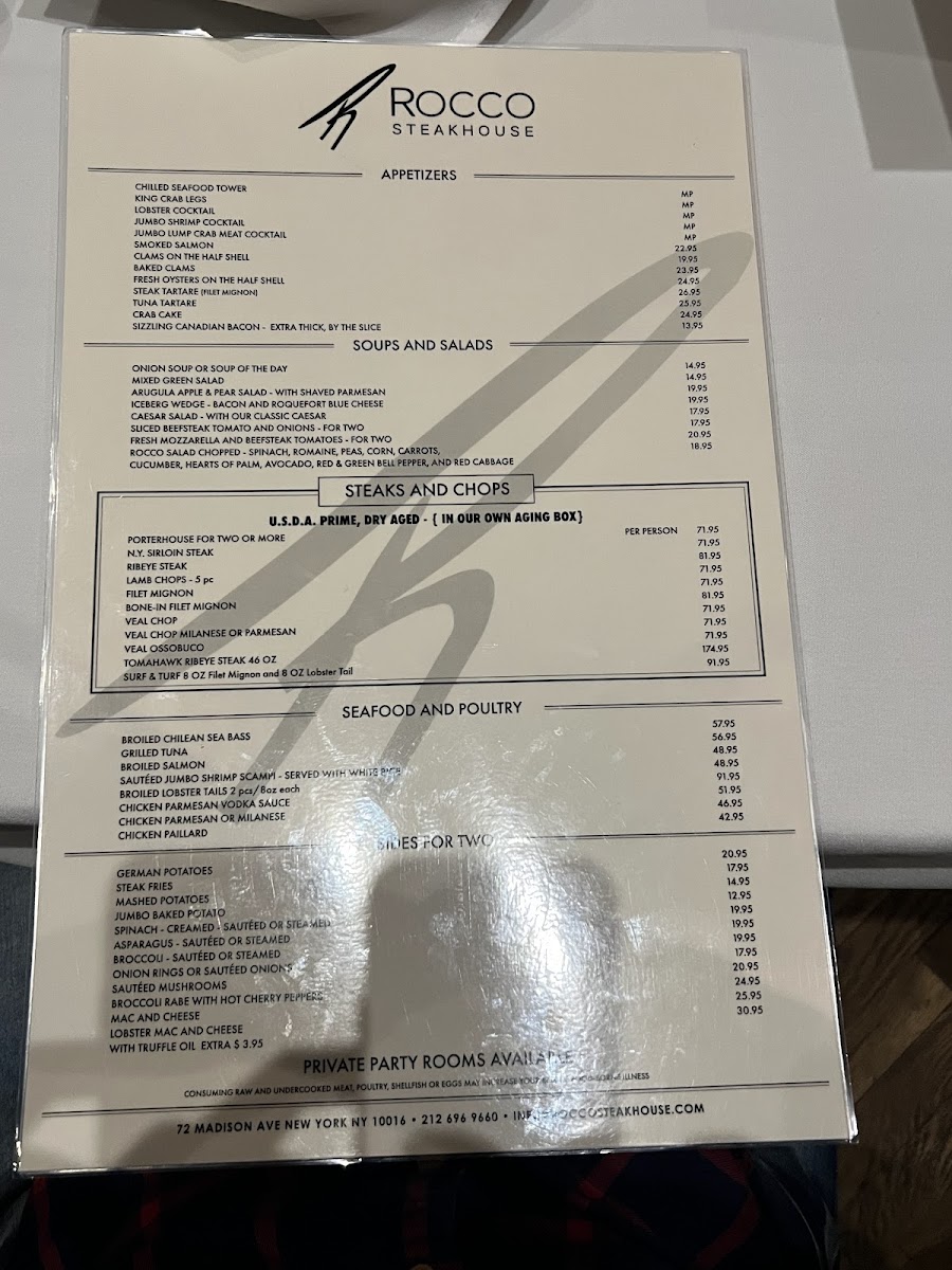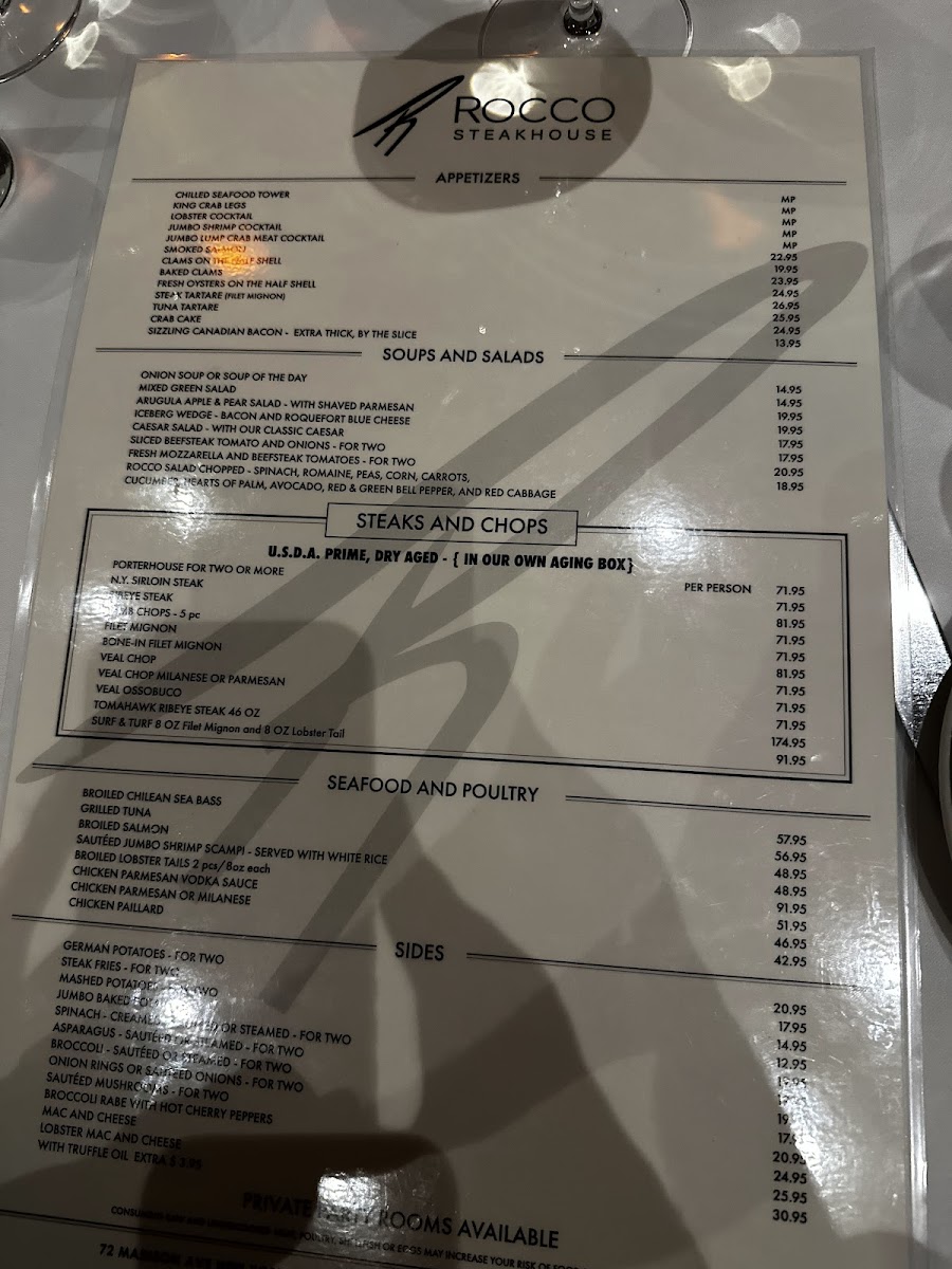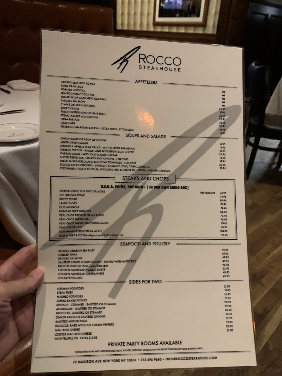 Rocco Steakhouse Menu