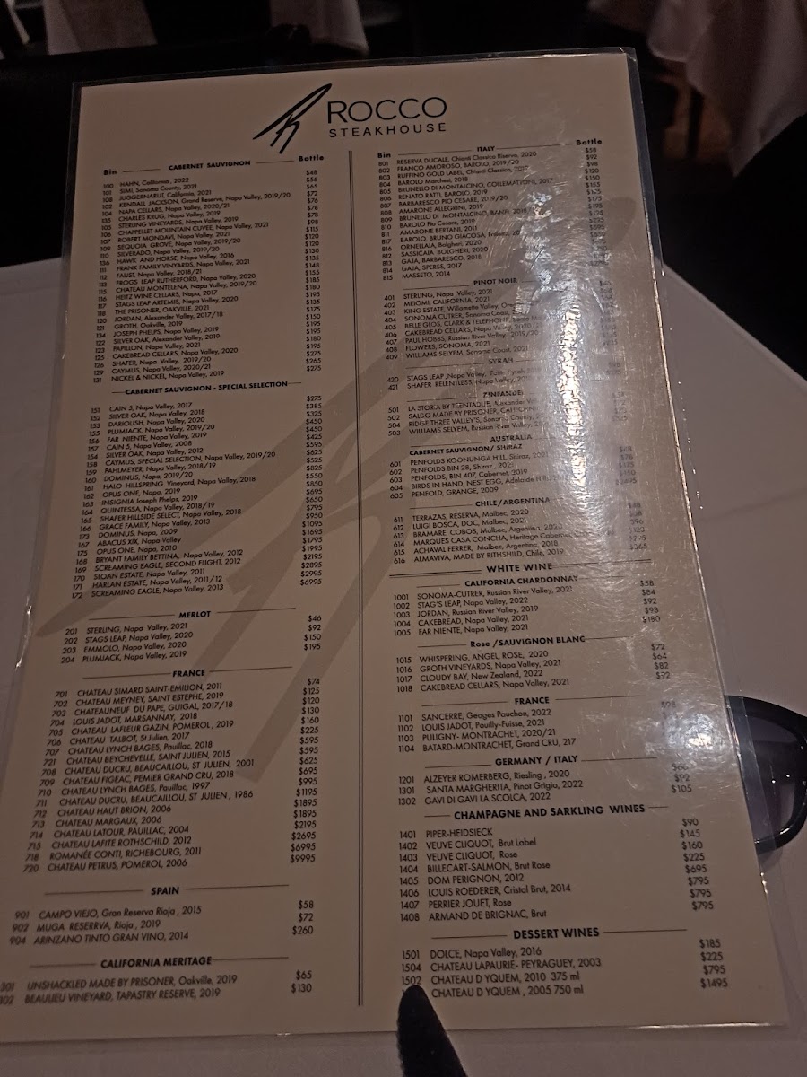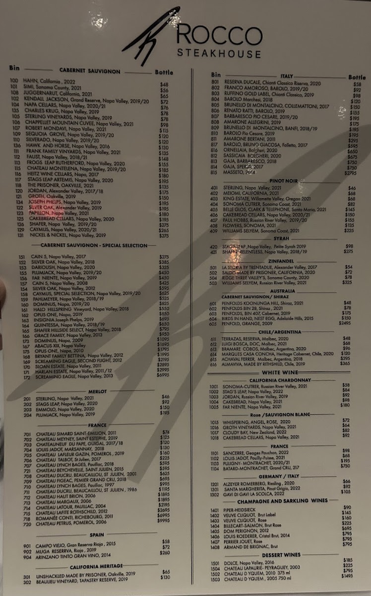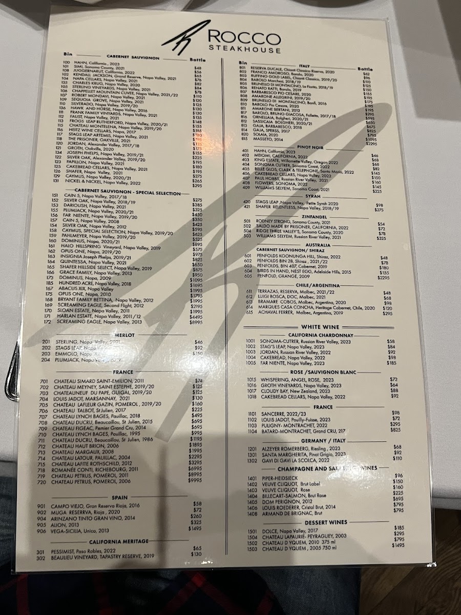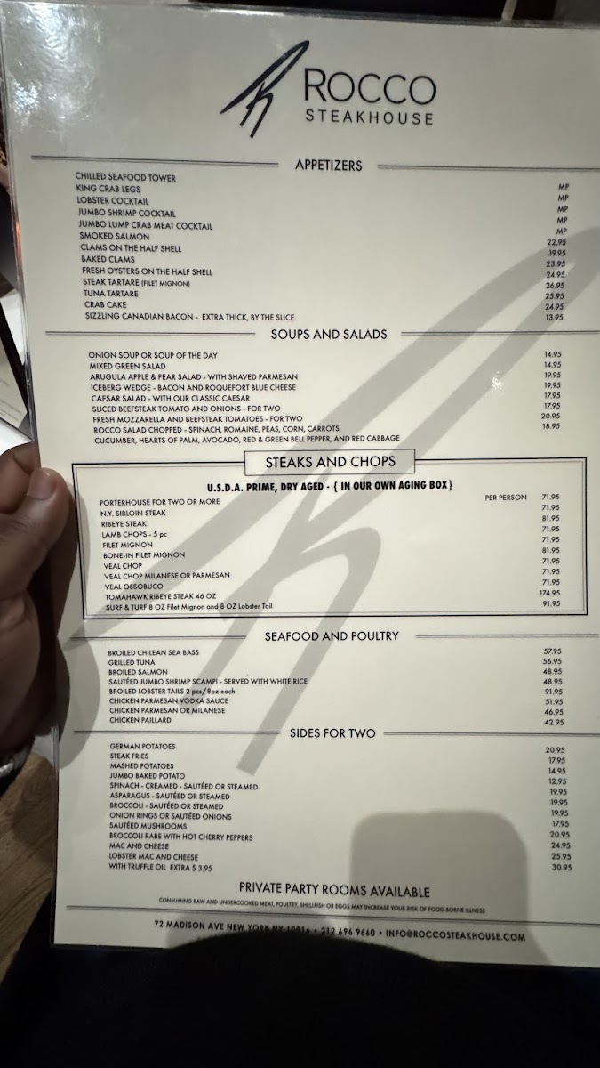 Rocco Steakhouse Menu