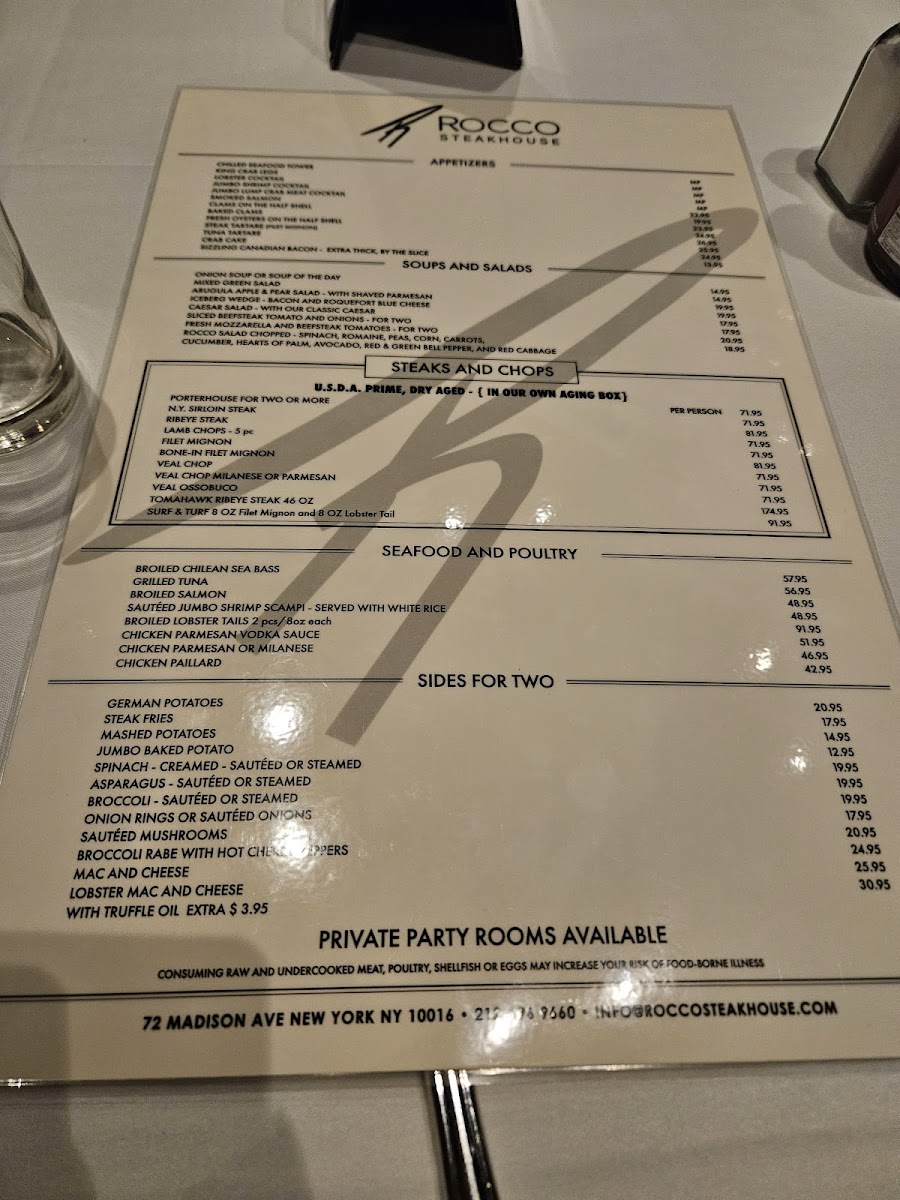 Welcome to Rocco Steakhouse, a gem nestled in the heart of New York City at 72 Madison Ave. This renowned steakhouse serves a menu that promises an unforgettable culinary experience, where each dish is crafted to perfection. The highlight? The juicy, flavorful steaks that diners rave about, prepared exactly to your liking.